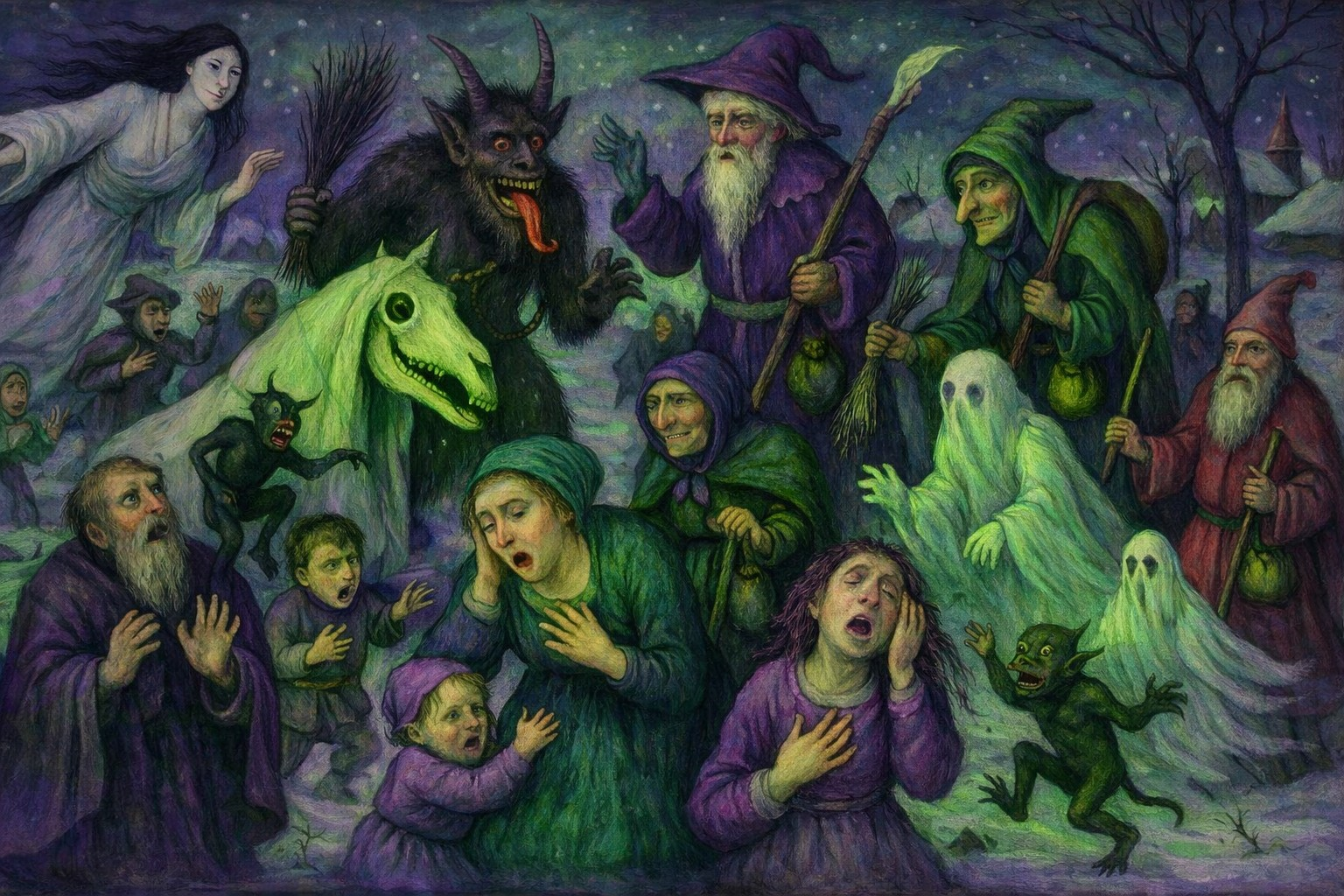 Here you’ll find more than simple articles. These posts are small doorways into strange traditions, forgotten legends, and unsettling corners of history. Each entry explores the tales humans have told for centuries to explain the unexplainable: the spirits in the trees, the shadows in the cemetery, the creatures that arrive with winter winds.